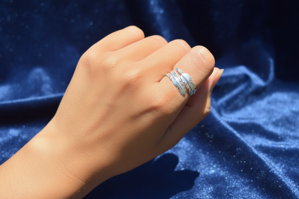 Este bonito anel, feito numa liga metálica antialérgica, lembra-nos que o Anjo da Guarda está sempre connosco. Basta olharmos para esta pena das suas asas e sabemos que está lá, mesmo ao nosso lado.