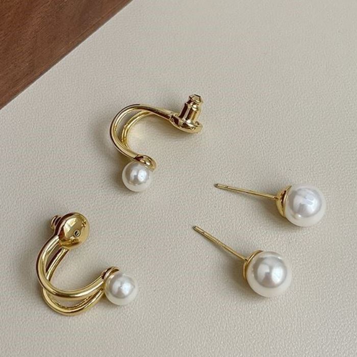 Júlia | Brincos dourados com pérolas