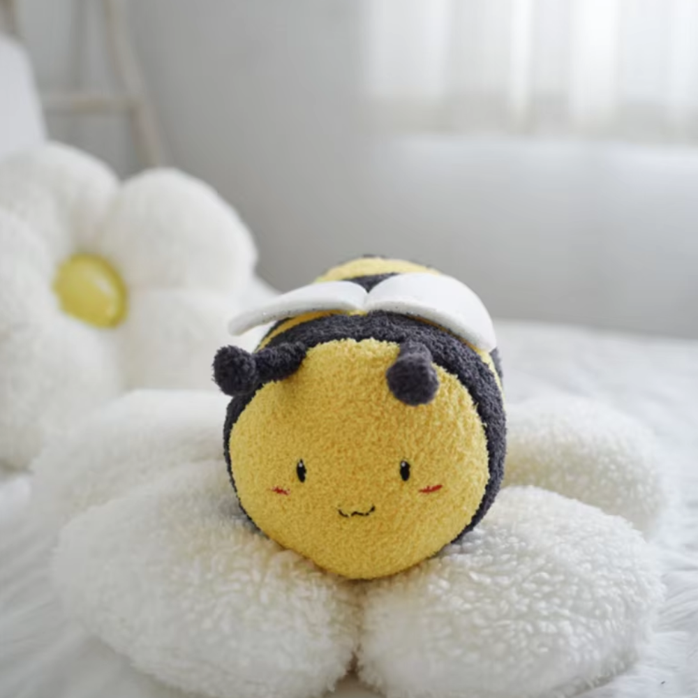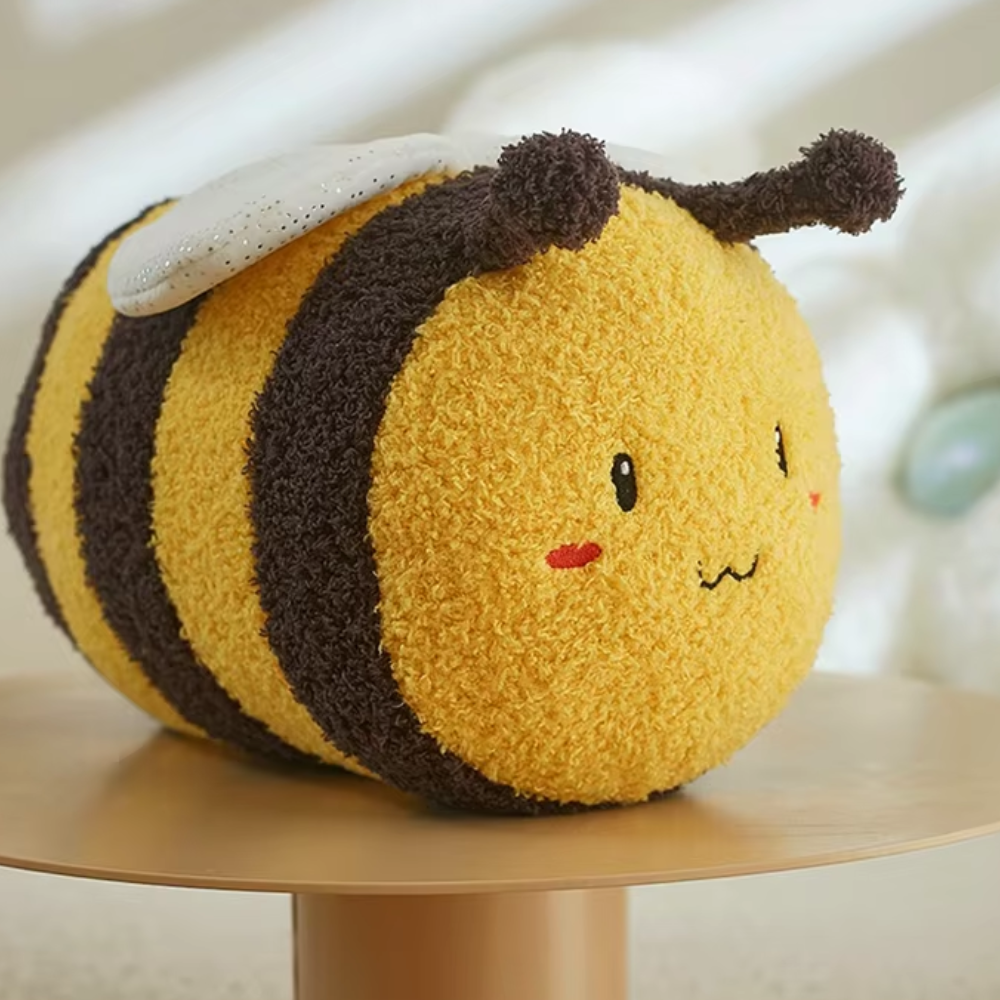 A abelha de peluche apresenta um design adorável com material suave, tornando-a uma decoração encantadora e o companheiro perfeito para momentos aconchegantes.