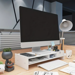 - O suporte para monitor apresenta um design elegante, elaborado para elevar o seu ecrã enquanto proporciona armazenamento organizado, tornando o seu espaço de trabalho funcional e visualmente apelativo.