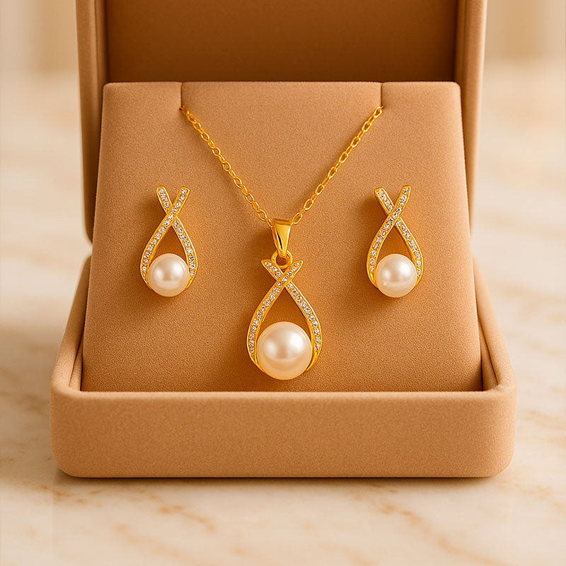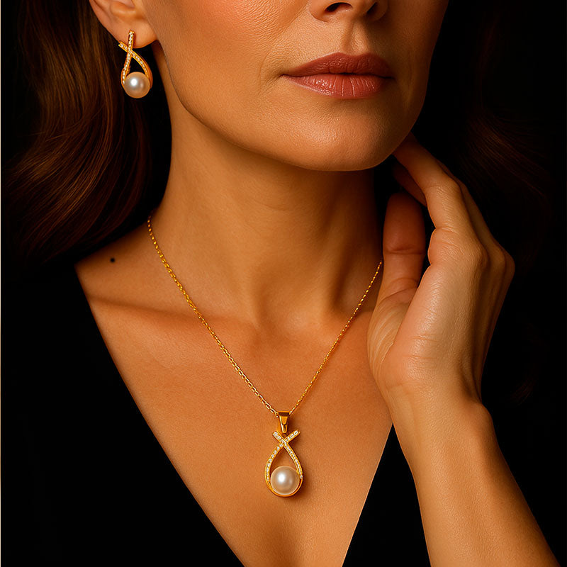 Um conjunto de colar e brincos que é um must have no guarda-roupa das mulheres chiques.