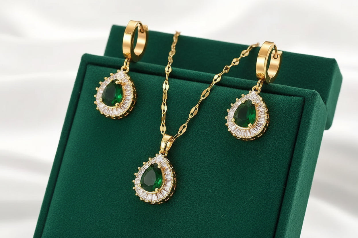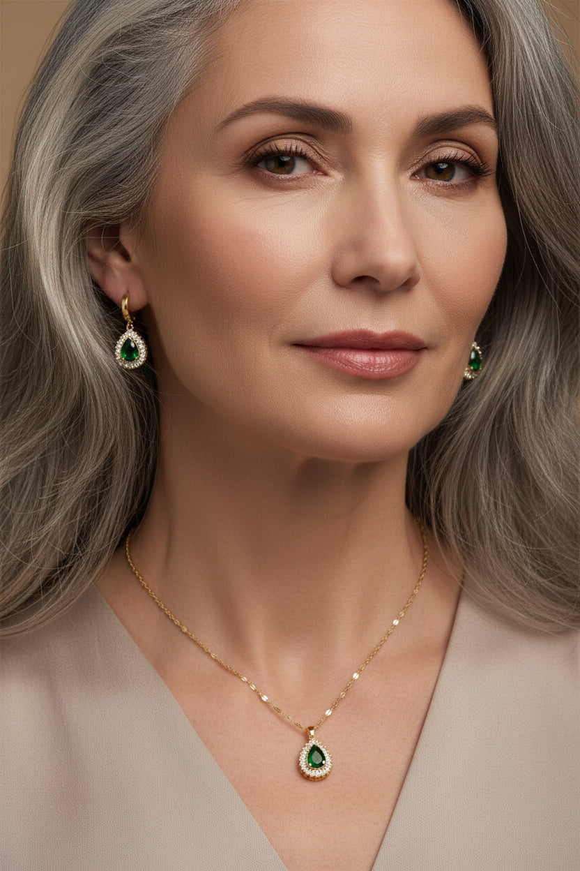 O conjunto Elisabeth combina beleza refinada com um suave brilho dourado. Feito em ouro, este conjunto acrescenta um acabamento gracioso a qualquer visual.