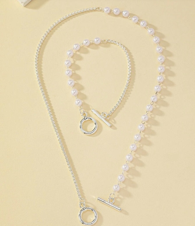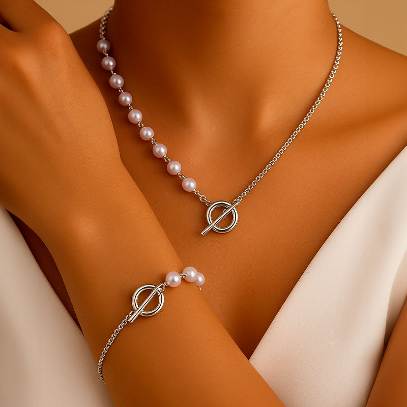 Eva |Colar e pulseira prateados com pérolas