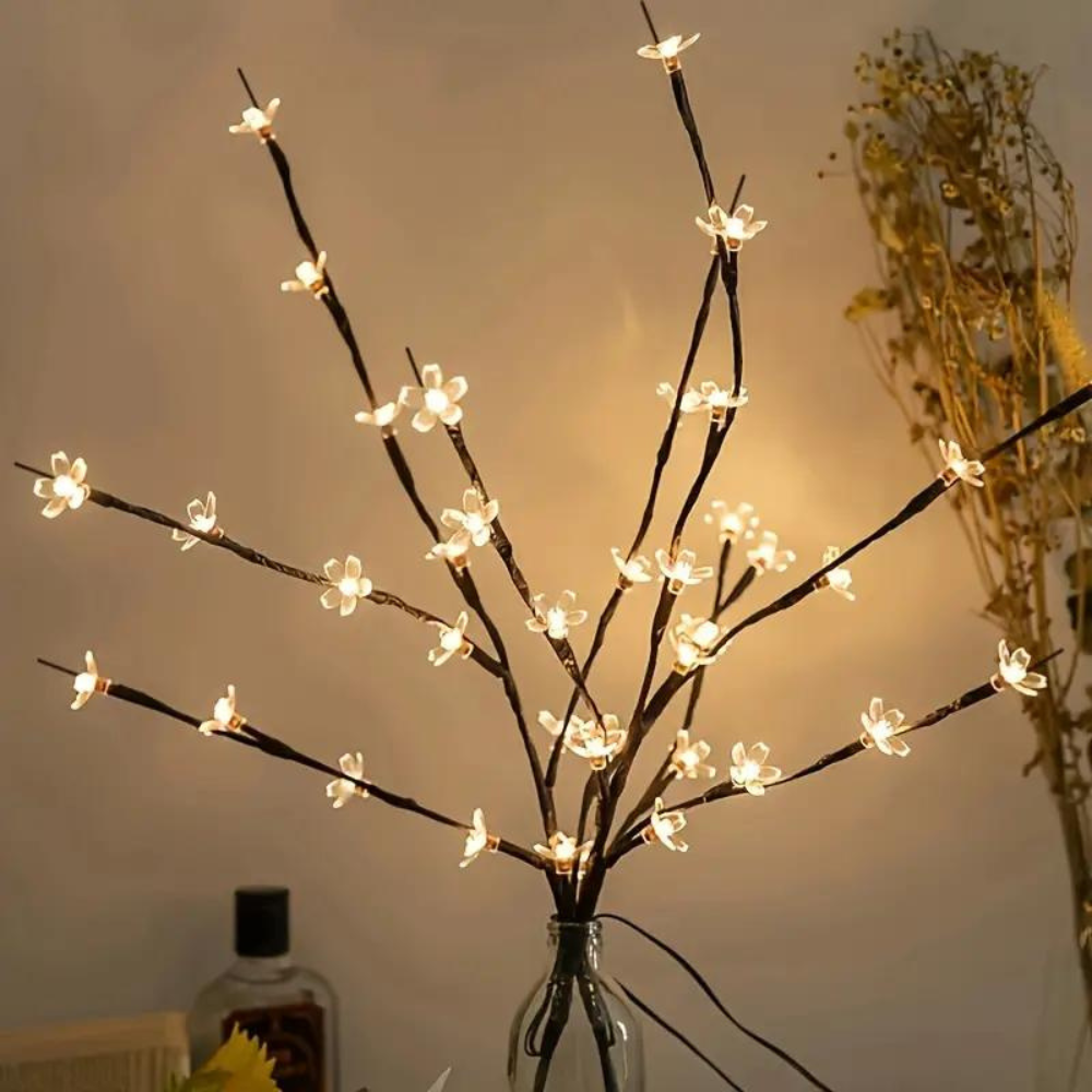 - O pacote inclui 1 Iluminação da Árvore de Flor de Cerejeira que possui 4 ramos e 4 flores brilhantes em cada ramo. A árvore requer 2 pilhas AA, não incluídas.