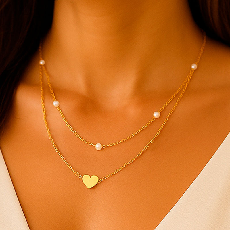 Dois colares num só e a delicadeza das pérolas aliada a um pingente em forma de coração. Uma peça super original que vai fazê-la destacar-se no meio da multidão.