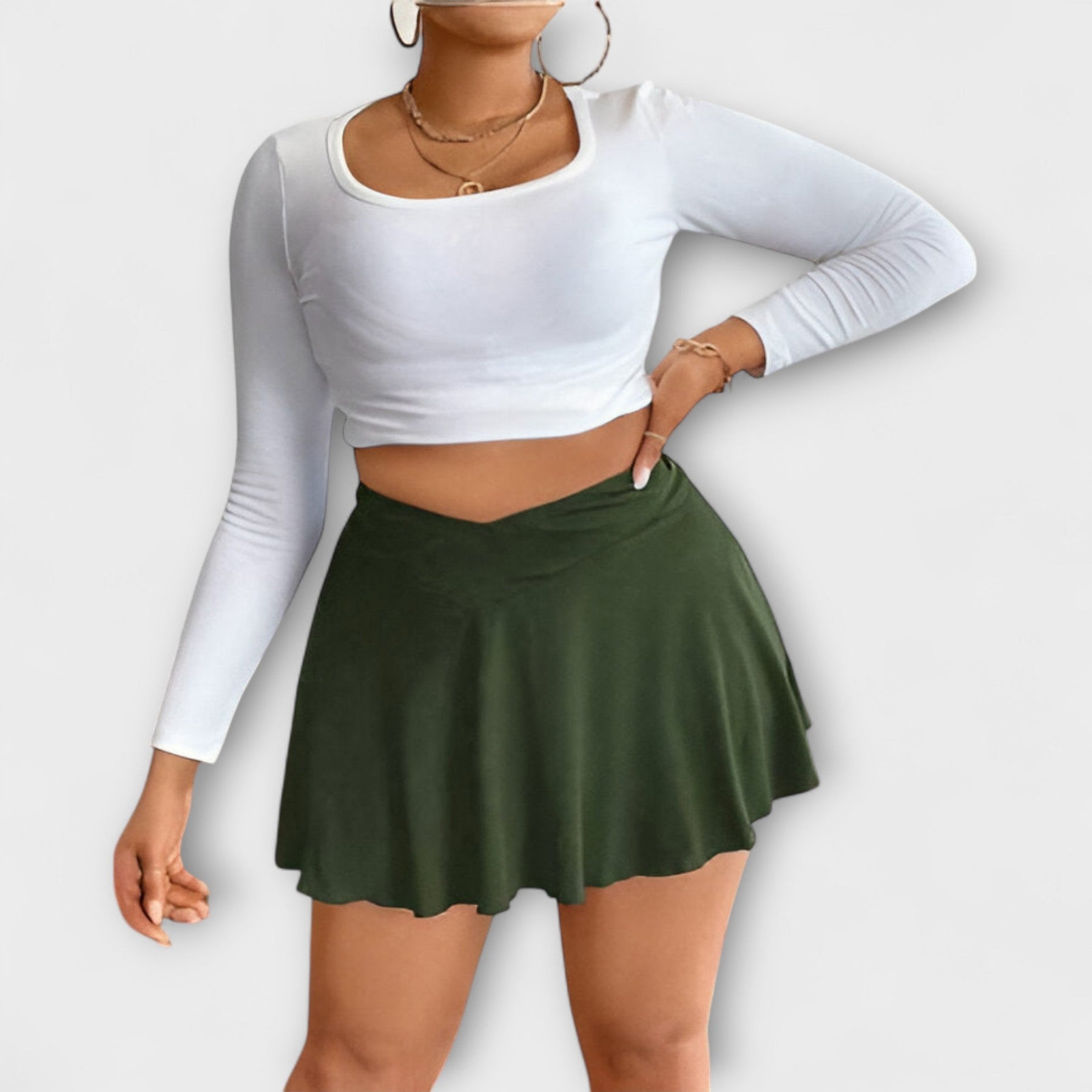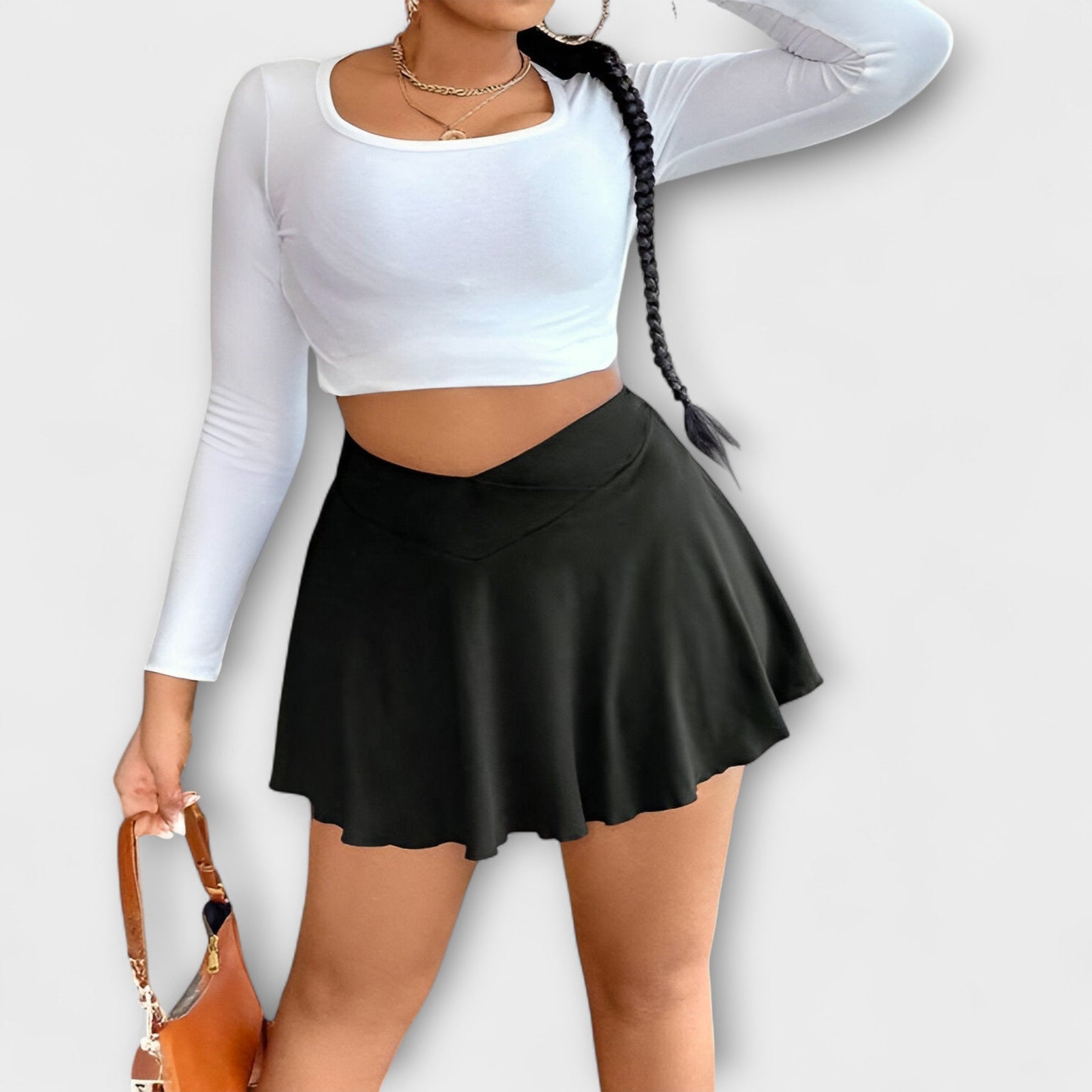 A saia Gloria combina um ajuste lisonjeiro, de cintura alta com uma forma linda, leve em A, que oferece estilo e liberdade de movimento. Perfeita para o dia-a-dia e ocasiões especiais – esta saia destaca a tua figura e move-se elegantemente contigo.