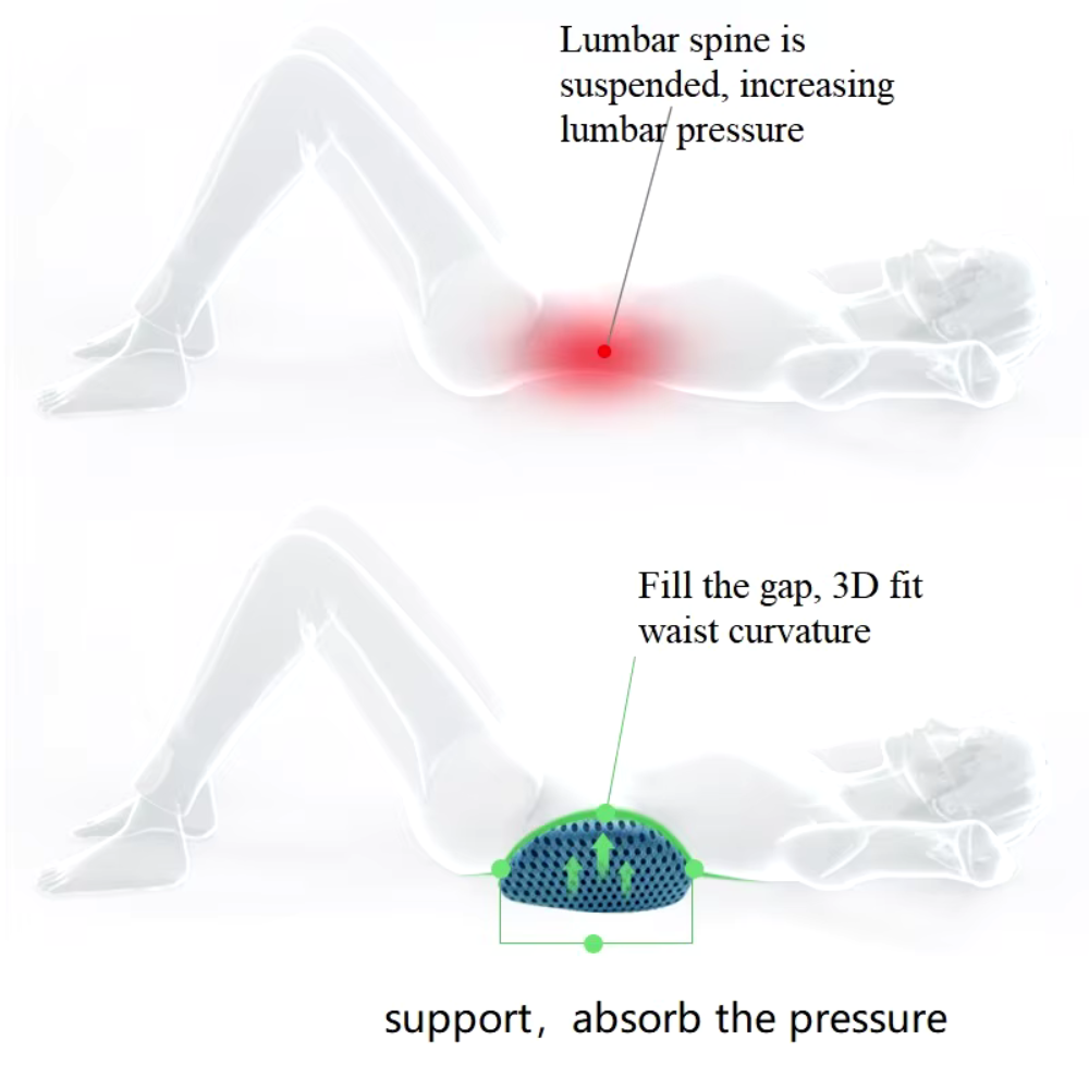- A Almofada de Suporte Lombar é feita de tecido em malha 4D de alta qualidade e espuma de memória de lento retorno durável.
