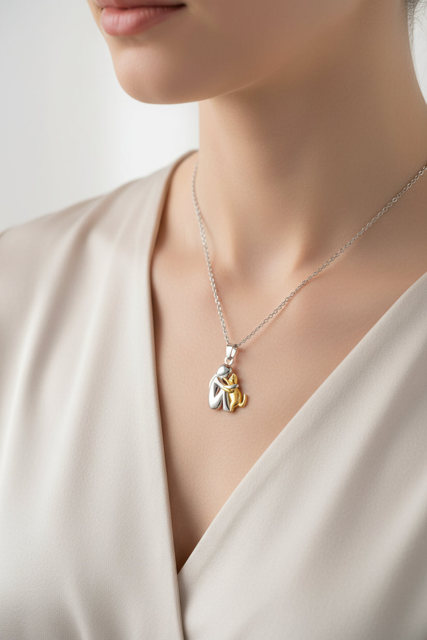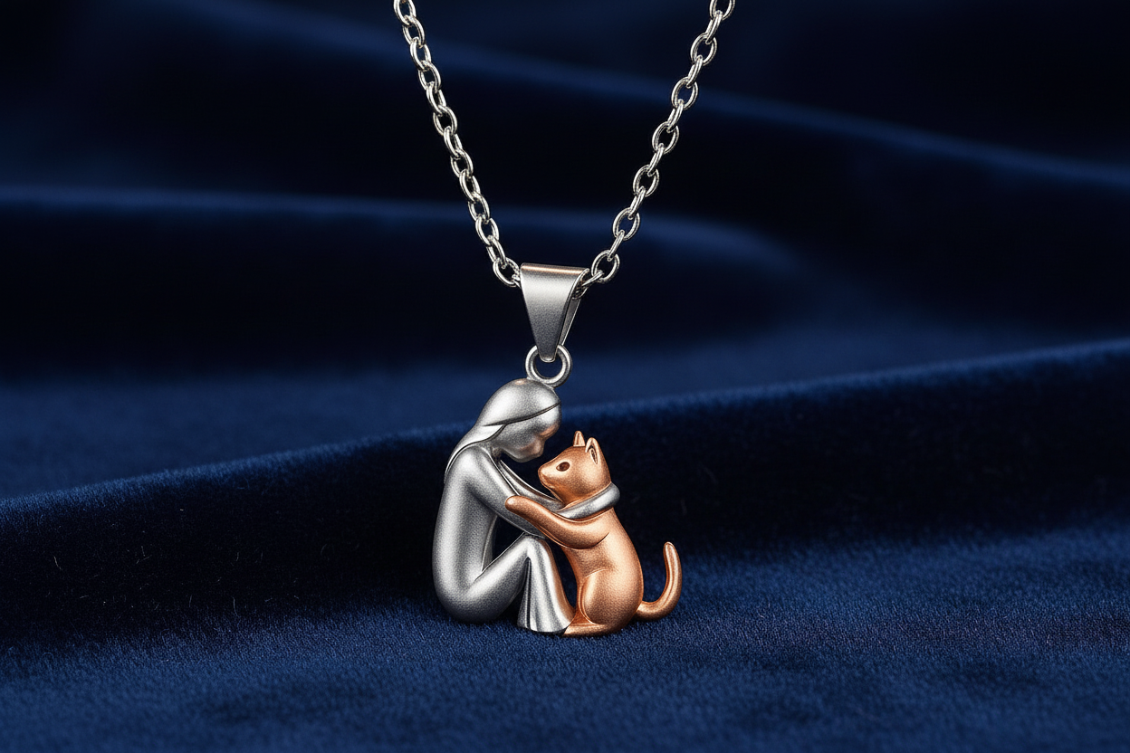 Uma joia cheia de amor que mostra o vínculo especial entre o homem e o gato: um símbolo intemporal de lealdade, amizade e amor infinito.