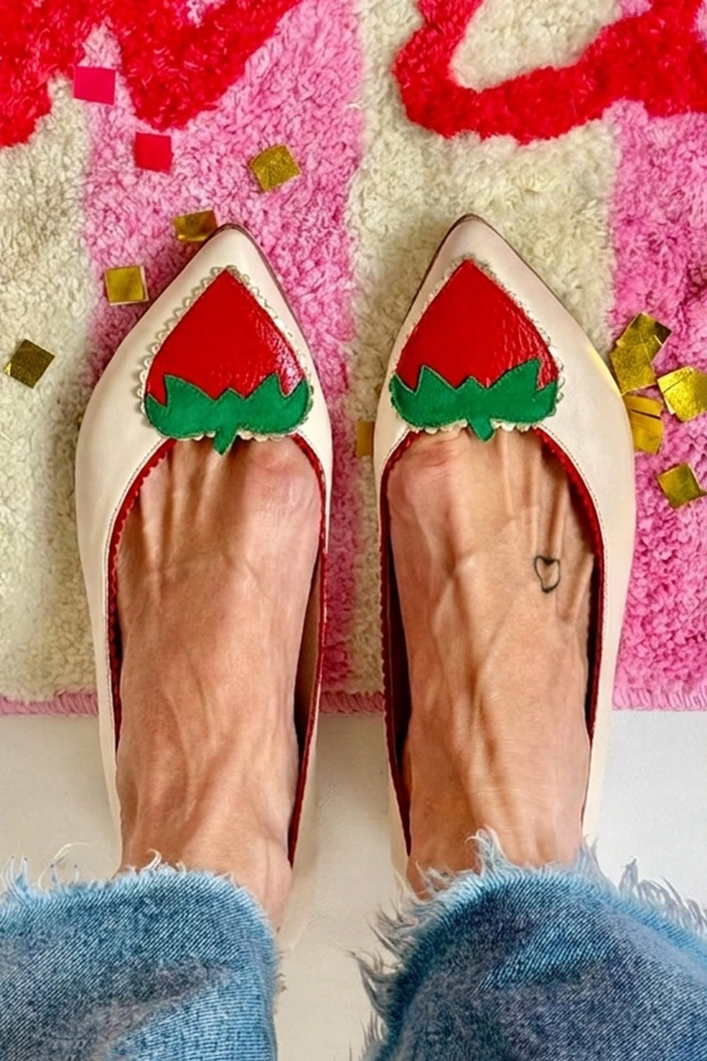 Sapatilhas bege de bico fino com estampa de morango combinando [Pré-venda] Escreva uma Avaliação